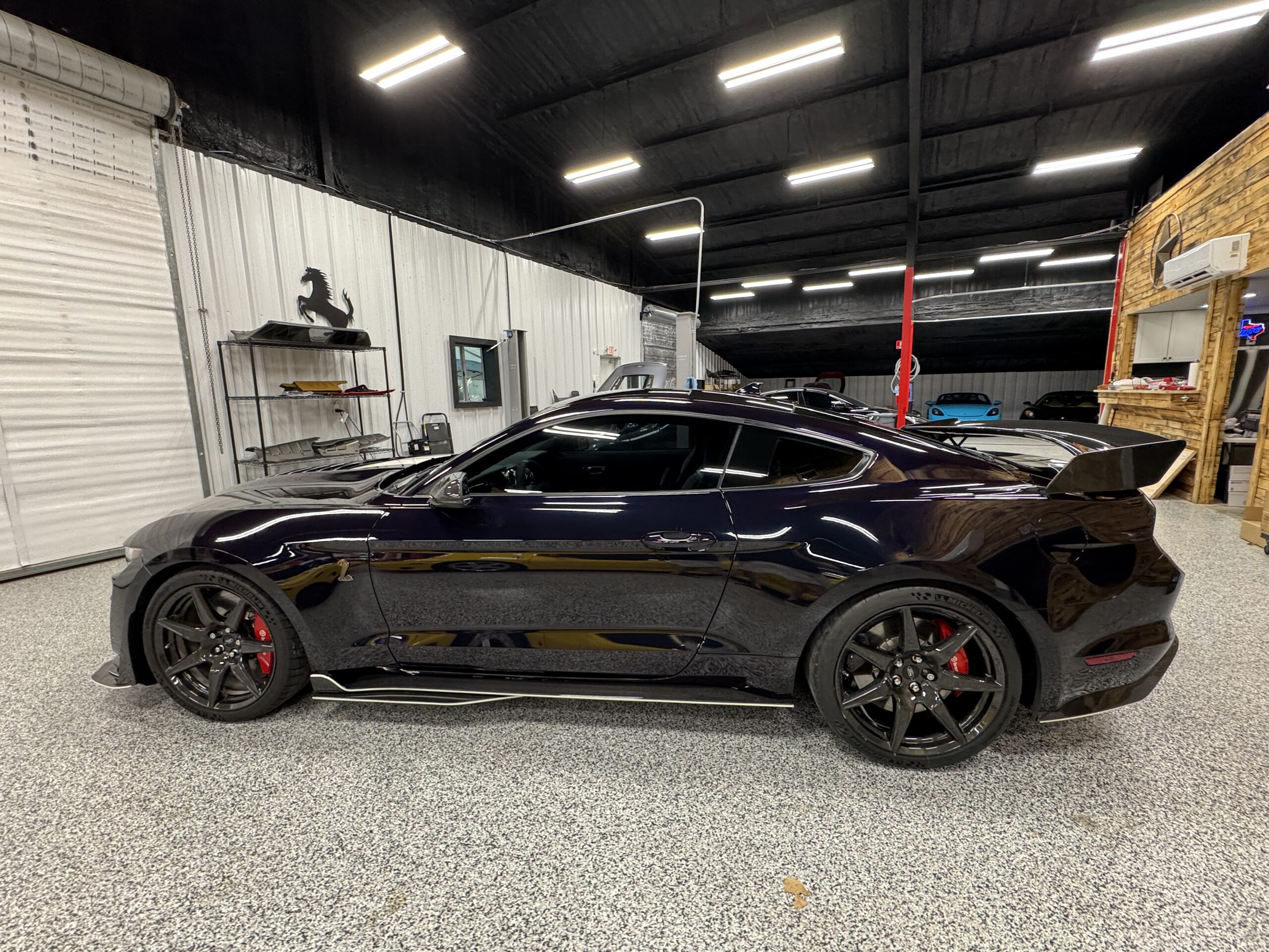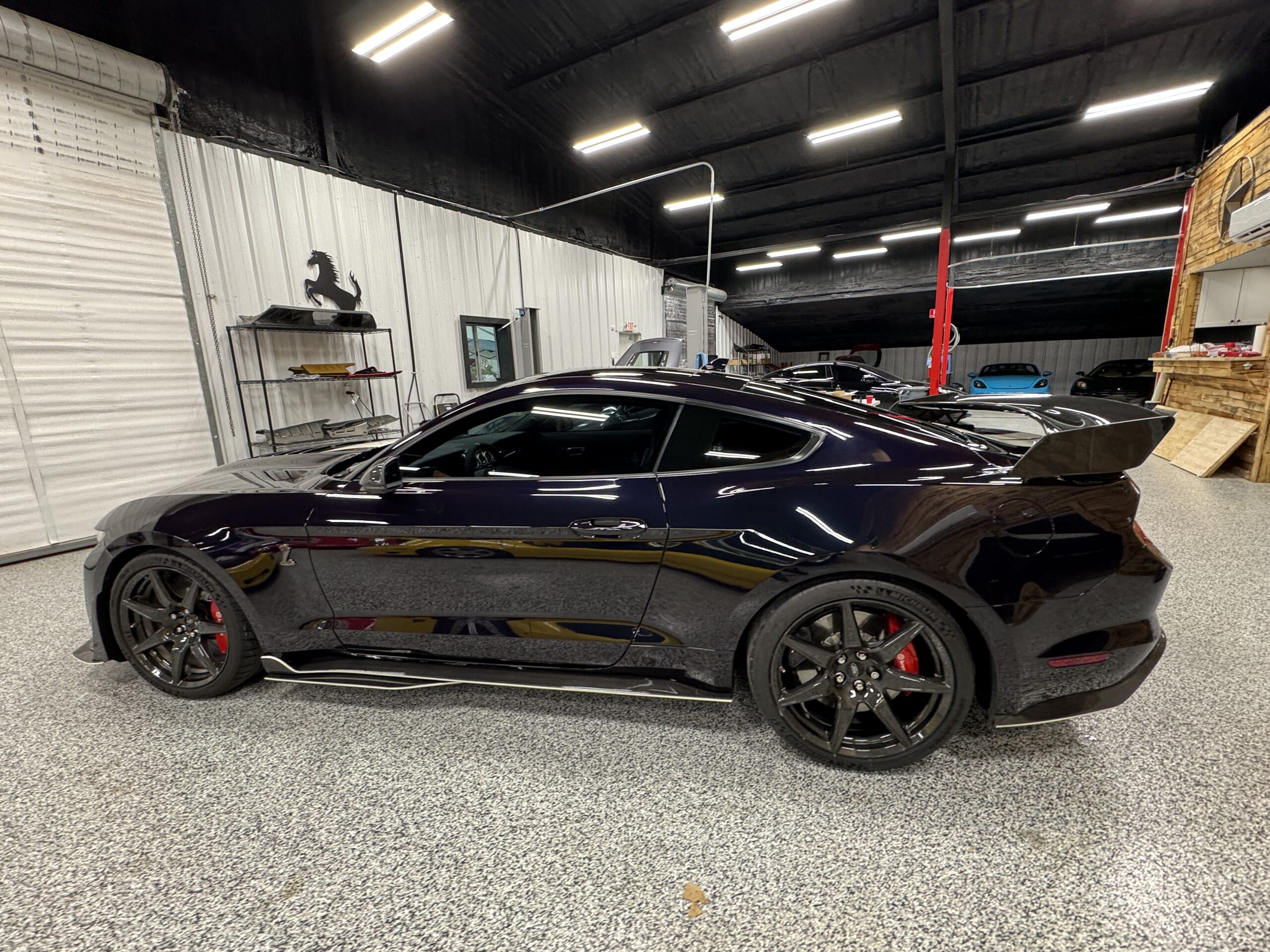 This GT500 is the pinnacle of Mustang performance, combining a ferocious 760-hp V8 with track-ready handling and a head-turning Mischievous Purple Metallic finish that shifts between a purple, green, blue and black depending on the light.
