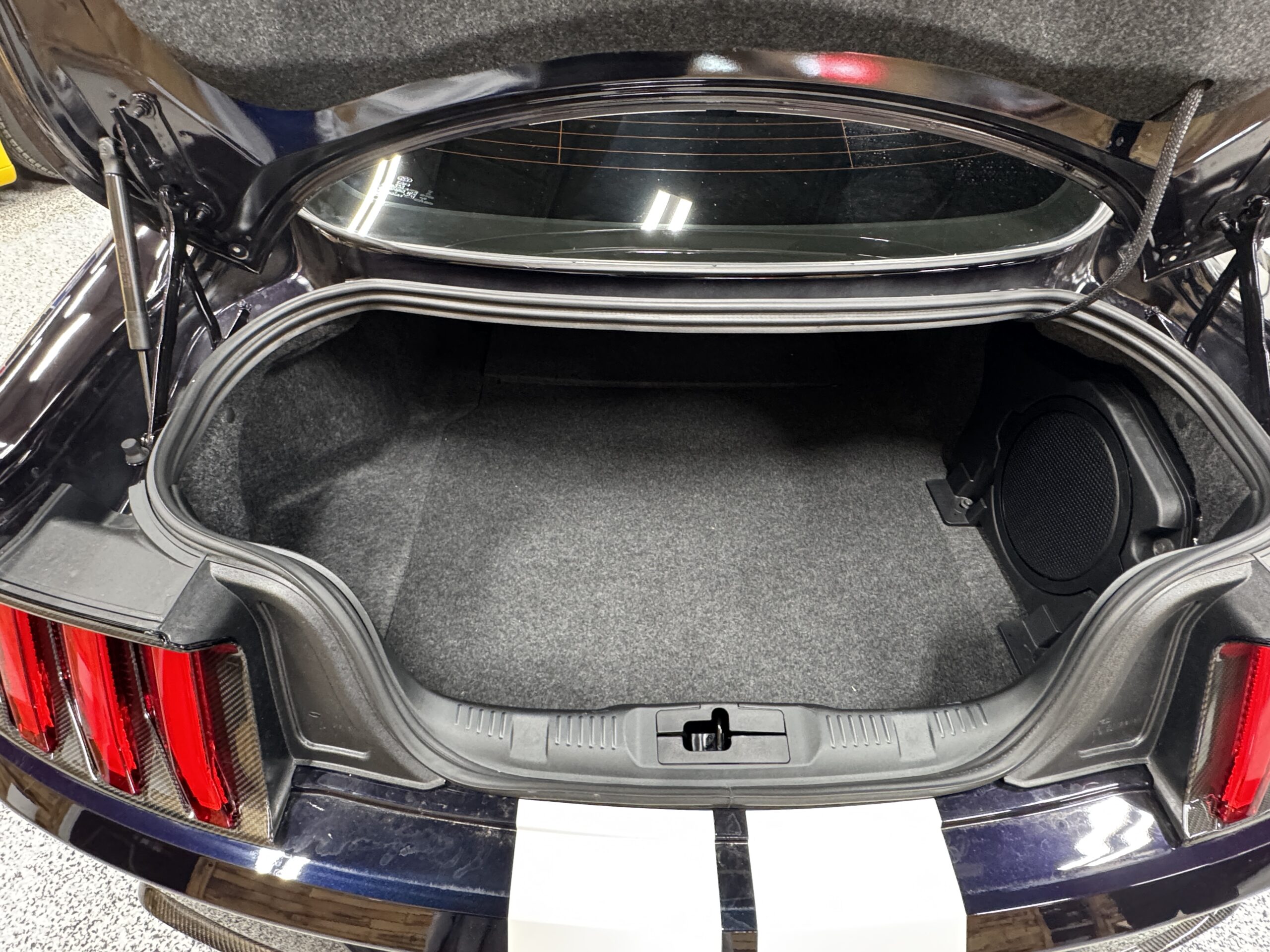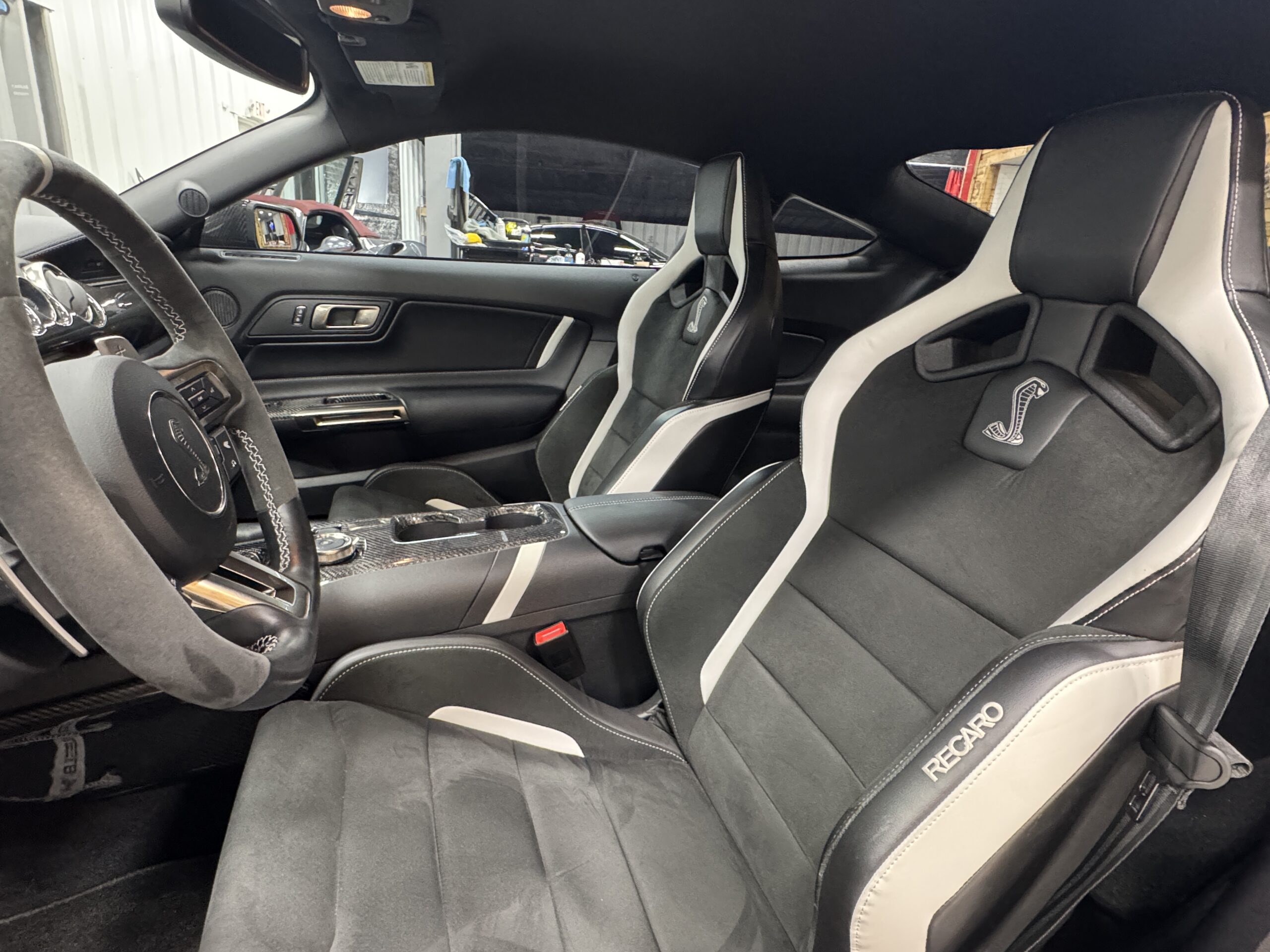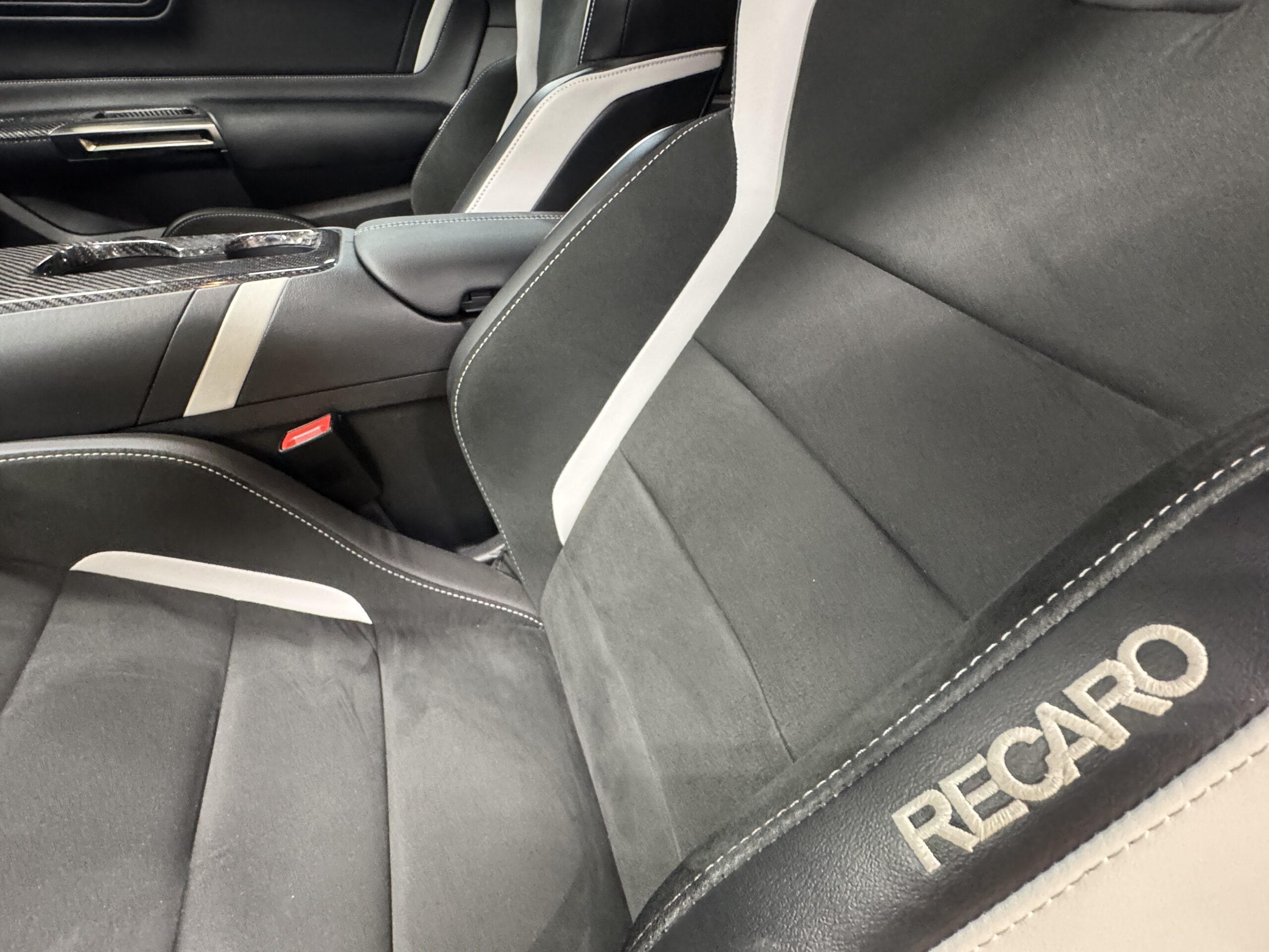 - Features: Painted racing stripes, Recaro bucket seats, 12” digital gauge cluster, Bang & Olufsen sound system, and SYNC 3 infotainment