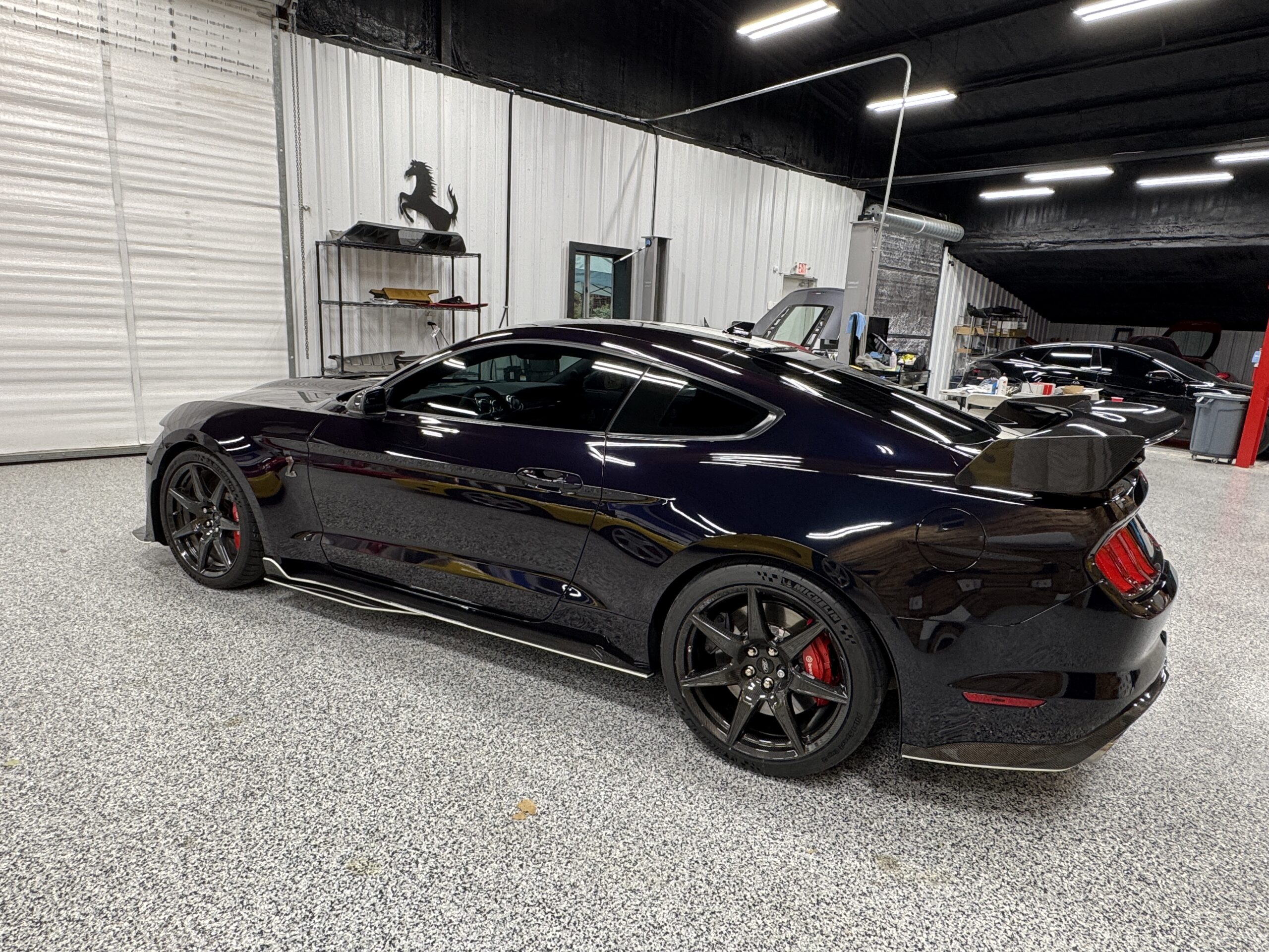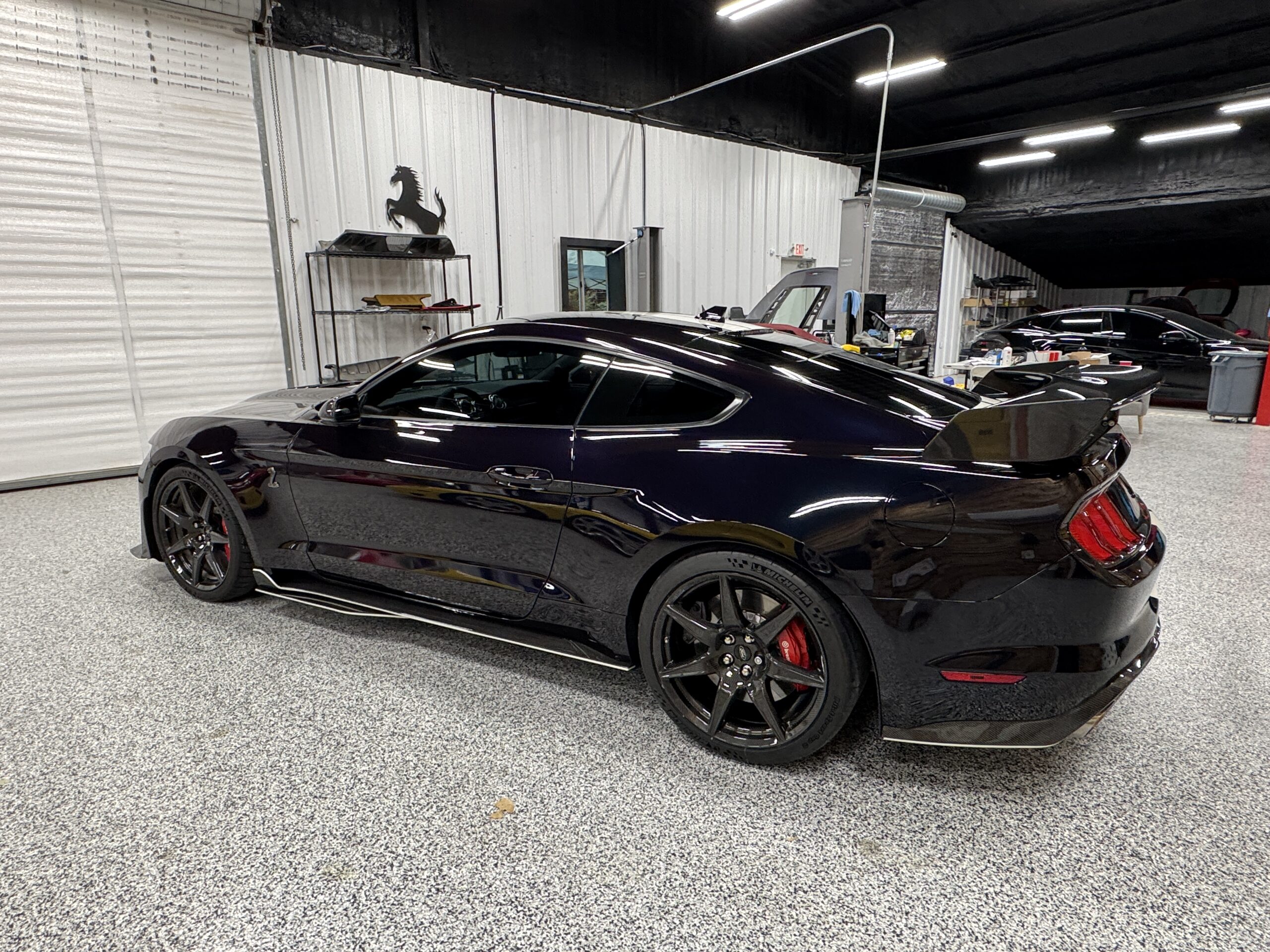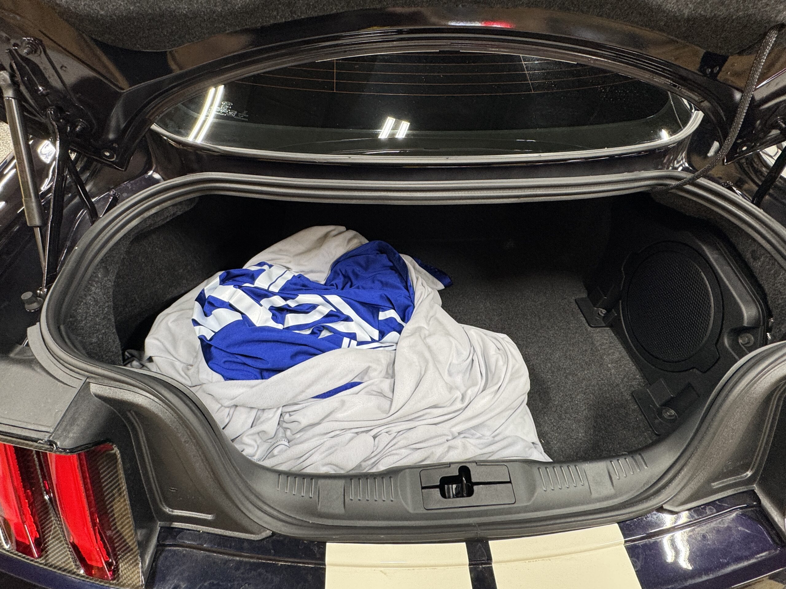 - Features: Painted racing stripes, Recaro bucket seats, 12” digital gauge cluster, Bang & Olufsen sound system, and SYNC 3 infotainment