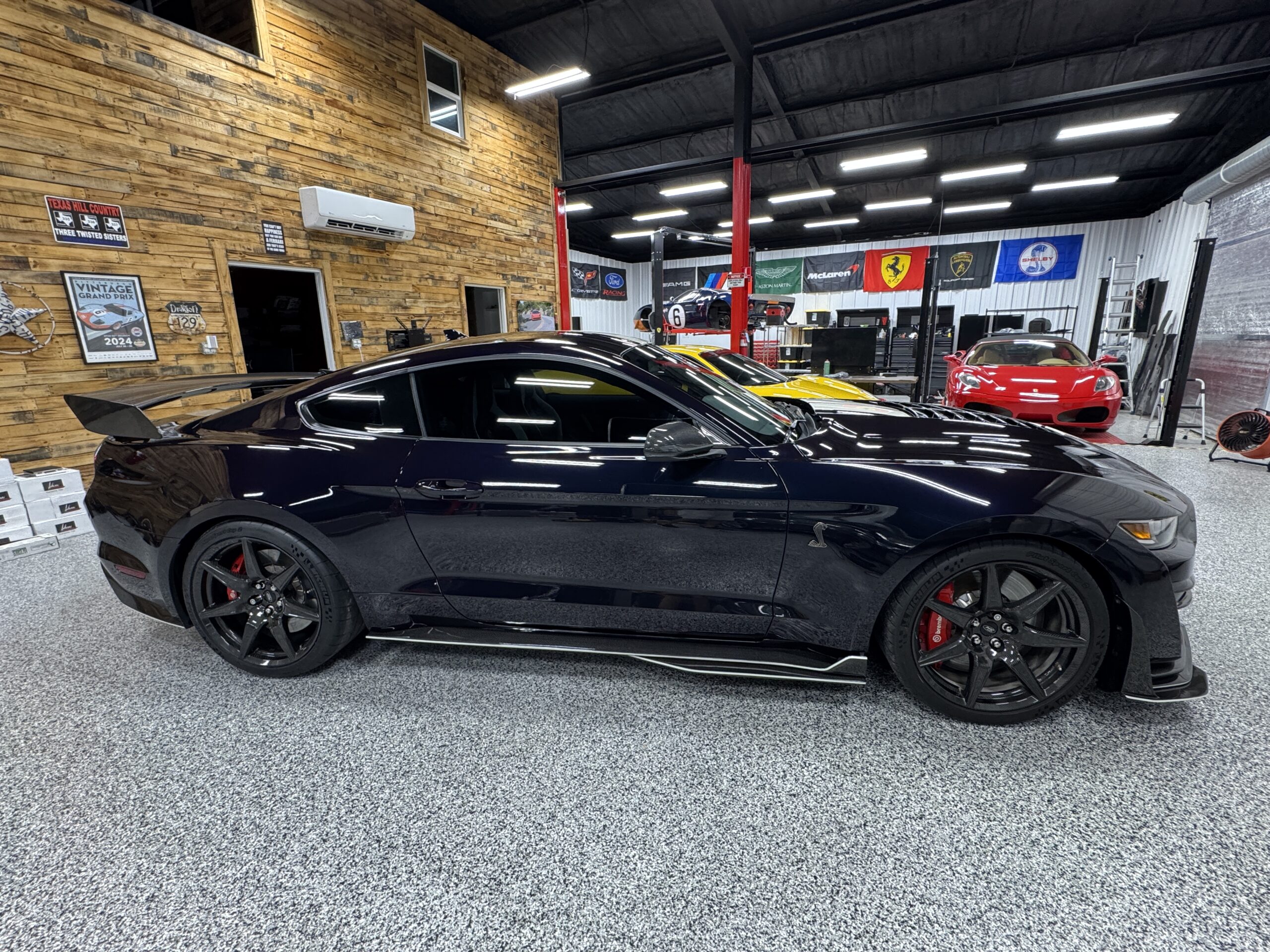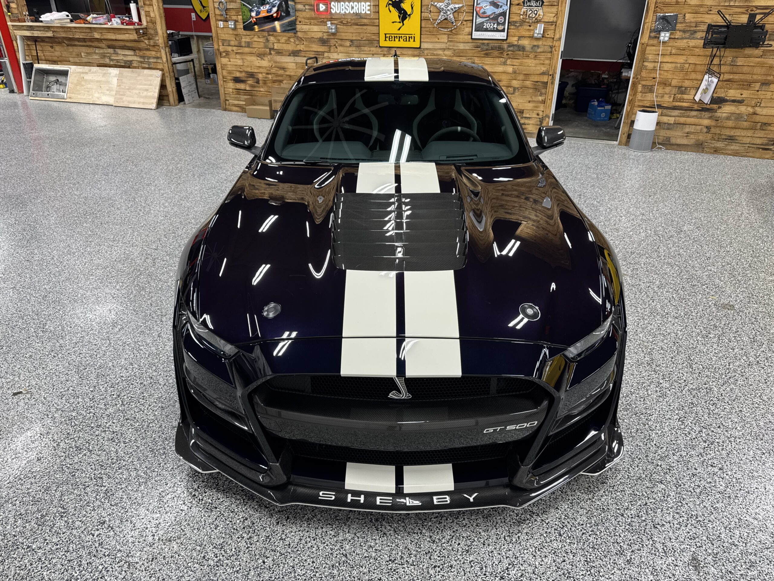 For sale is an extraordinary 2022 Ford Mustang Shelby GT500 “Double Golden Ticket,” one of only 7 in the world finished in the stunning Mischievous Purple Metallic with painted stripes and the Carbon Fiber Track Pack. With just 162 GT500s produced in this exclusive color, this car is a true collector’s gem, blending true supercar performance and collectability.