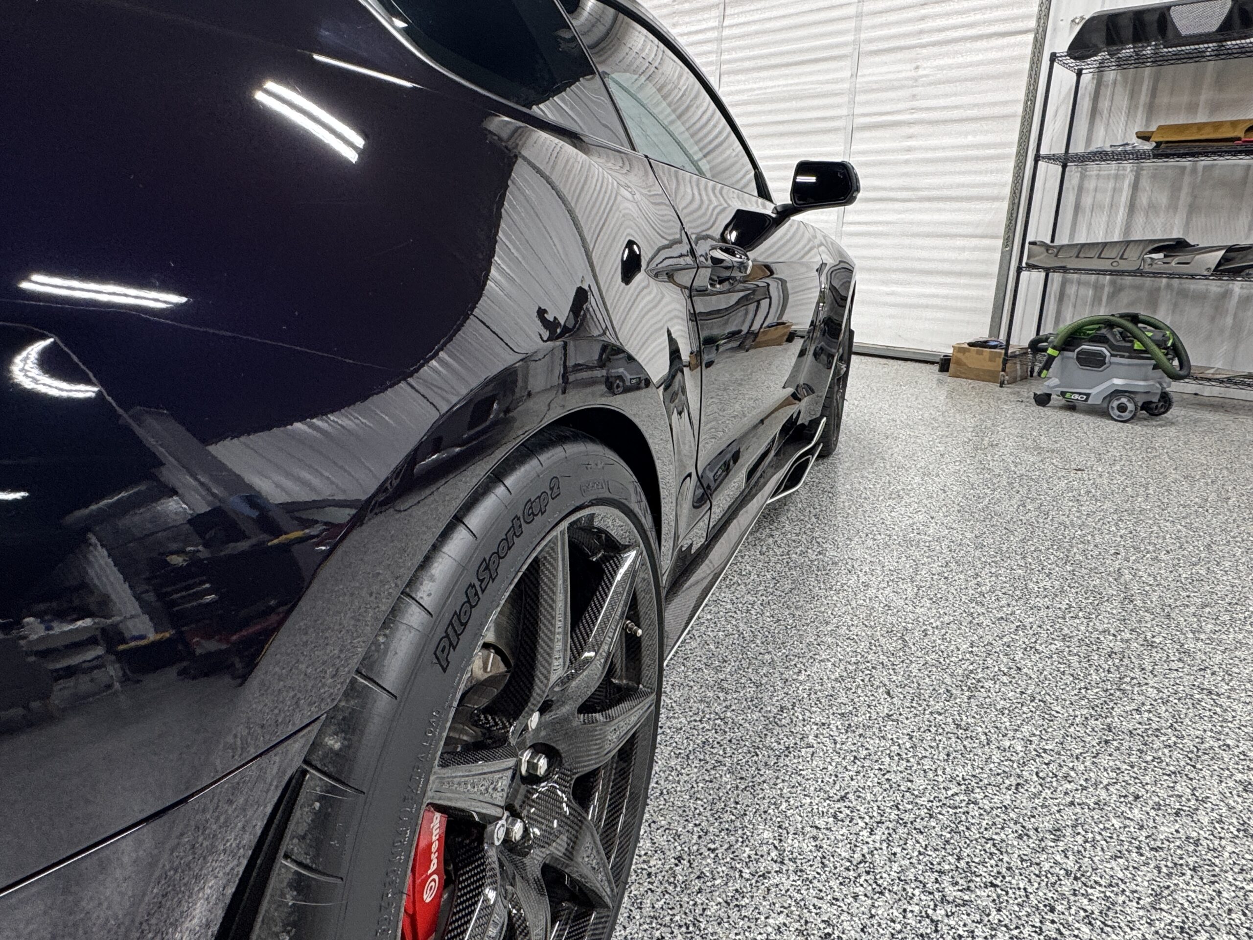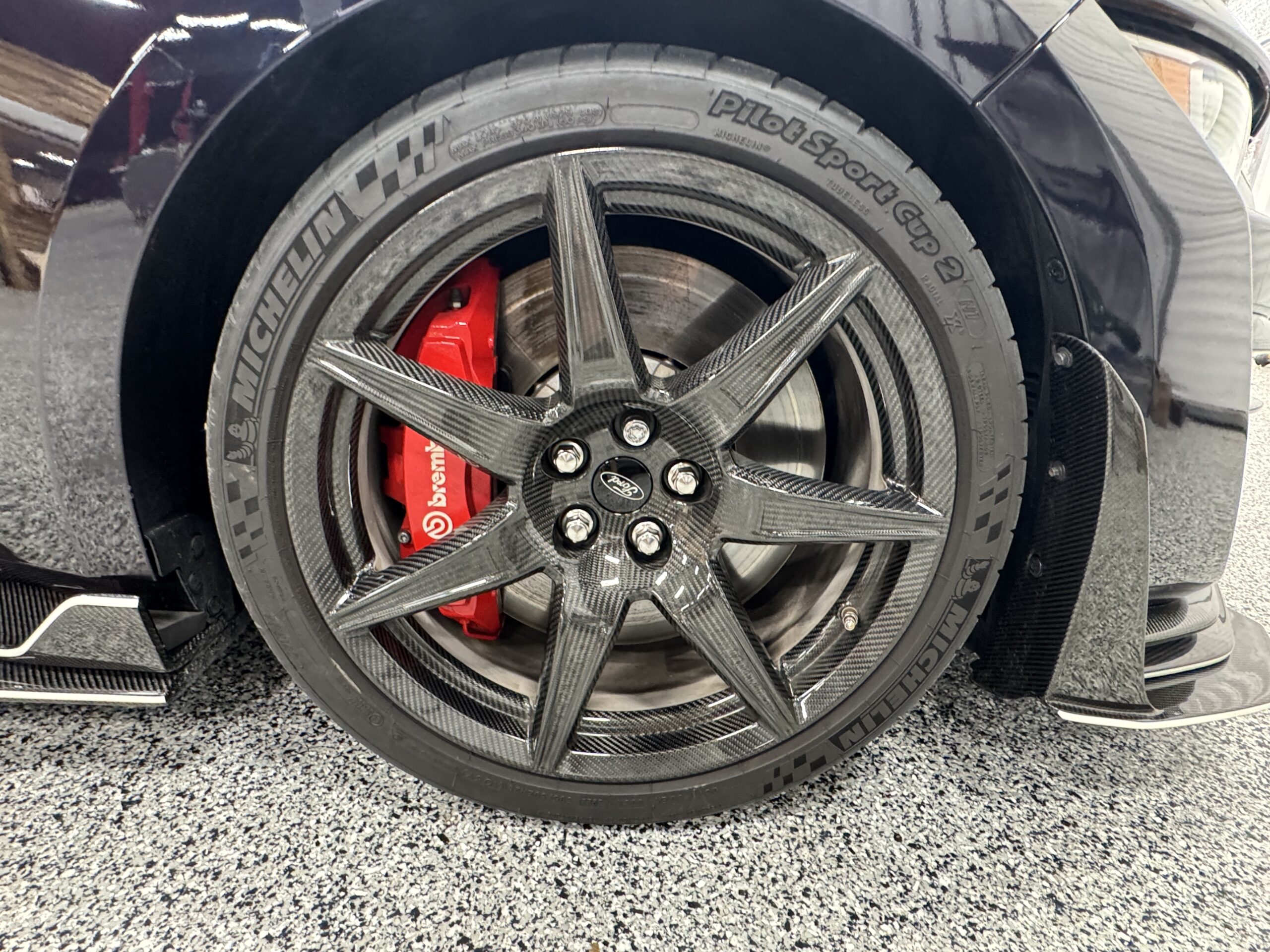 - Carbon Fiber Track Pack: Includes 20” carbon-fiber wheels, Michelin Pilot Sport Cup 2 tires, carbon-fiber rear wing, front splitter wickers, and rear seat delete for weight savings